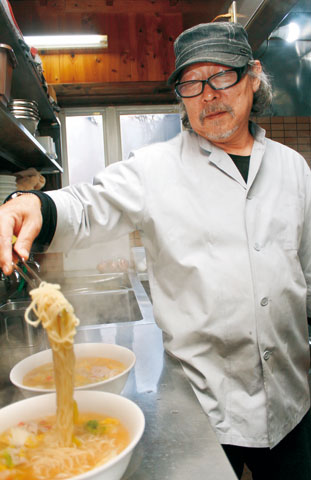 透き通ったあっさりスープに極細めん、そして具材の白菜と豚肉。海南市冷水のRAGUMAN本店は、ウズベキスタンのめん料理ラグマンをヒントに開発した独自のラーメンで根強い人気を誇る。オーナーの寒川憲男さん(66)が1993年の創業以来、追求するのは、女性に愛される店づくりだ。