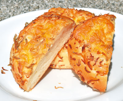 和歌山県が太鼓判を押すプレミア和歌山のちりめんじゃこにチーズをからめ、もちもちした厚めのパンにのせて、こんがり焼き上げる。60年以上続く店の2代目オーナー、上田高市さんが和歌山産の魚を使った新商品を作ろうと、チーズと相性の良いちりめんじゃこにたどり着いた。3年前に出し始めると、瞬く間に人気商品に。「じゃこの香ばしさと塩味がパンにマッチしています」