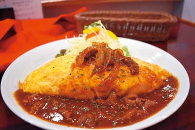 上質な和牛バラ肉を惜しげもなく使ったあっさり味のハヤシソースは、赤ワインやケチャップでじっくり煮込んだ肉のうまみがたっぷり溶け出す。バターや牛乳を使わず、卵だけでふわりと優しく包んだライスはボリューム満点。とろとろのソースと絡まり、絶妙なハーモニーを奏でる。