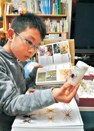 捕まえる道具を自作し、見つけたクモ全てをノートに記録するこだわりよう。将来は「もちろんクモの専門家」と言い切る。