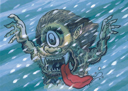 一つ目、一つ足で、和歌山と奈良の境、果無山脈に出る。12月20日にだけ現れ、山に入った人を食らう怖い妖怪。この日は「果ての20日」と呼ばれ、厄日とされた。熊野では雪の上に幅1尺(約30㌢)ほどの足跡が残っていると、この妖怪の仕業とした。名前にある「だたら」はタタラ師(鍛冶師)に通じ、火から片目を守り、片足で鞴(ふいご)を踏む作業を繰り返すことから、重労働で片目と片脚が萎(な)えた鍛冶師になぞらえたとの説も。日本神話に登場する製鉄・鍛冶の神、天目一箇神(あめのまひとつのかみ)の落ちぶれた姿とも考えられている。