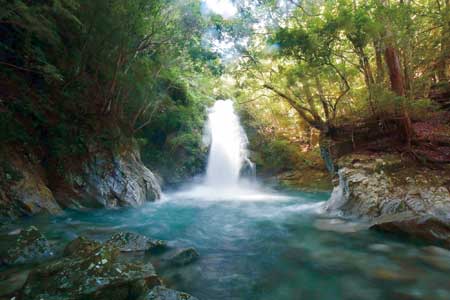琴の形に似ていることから名がついたと伝わる。上戸(こど)の滝が変じ、琴の滝となったとも。大雨の後で水量も多く、さすがは、すさみ町が「すさみ八景」のひとつに選んだ絶景の滝だ。