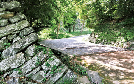 写真=上=天守一ノ門跡/下=本丸表門跡