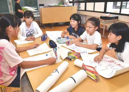 委員は5、6年生18人で、現在は6月25日に実施する避難訓練の準備を進める。校内だけでなく、通学途中で地震が発生した場合を想定し、「街中では窓や壁から離れる」や、電車やバスで通学する児童もいることから、発生時「つり革をしっかり持つ」と記したポスターを製作。「押さない、駆けない、しゃべらない、戻らない」の避難4原則をひらがなで大きく書いた垂れ幕も作り、低学年に分かりやすく訴える。
