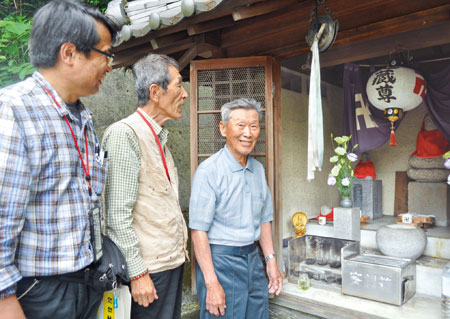 安政の大地震(1854年)の際、津波から避難する住民を汐見峠へ導き、大勢の命を救ったとされる海南市井田の呼び上げ地蔵。この伝承を活用した避難訓練が7月1日(日)、地蔵がある上神田地区で行われる。同自治会の大上敬史会長(59)は「実際に歩き、言い伝えを追体験することで防災意識を高める。伝承は当時の人々が目にした真実で、もっと生かされるべき。昔話で終わらせず、教訓として見直す機会にしたい」と意気込む。