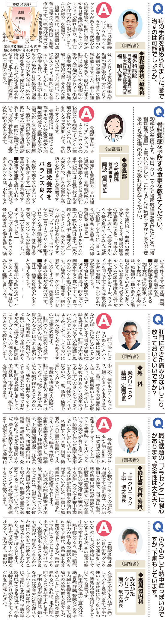 おしえて!マイドクターQ&A「痔」「骨粗鬆症」「肛門がん」「プラセンタ」「熱中症」(2018.7.28)