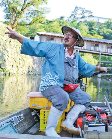 「10年前、天守閣再建50周年の2008年です。その年、『城フェスタ』と題し、様々なイベントが開かれました。水上イベントの運営に携わっている私は、お堀で舟からお城を案内したいとずっと思っていたんです。3年運航した後、船頭不足や舟の老朽化で中断しましたが、徳川吉宗の将軍就任300年に当たる2年前に再開しました」