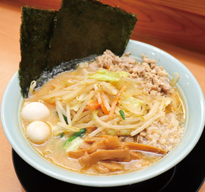 「和歌山では少ないみそラーメンです。九州の麦みそ、信州みそをベースに、4種類を混ぜた合わせみそを使っています。これを濃厚な白湯(パイタン)スープに合わせ、コクとうまみを凝縮させました。もやし、にんじん、玉ねぎ、ニラ、キャベツと野菜300㌘以上をラードで炒(いた)めてコーティングしており、最後までアツアツを食べていただけます」
