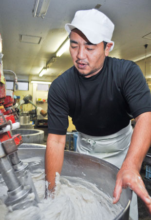 冬の定番料理、おでんに欠かせない練り物を製造、販売する和歌山市雄松町の濱辰商店。同市で最も古い114年の歴史をもち、長年愛される看板商品「扇かまぼこ」の味を守りつつ、新商品開発に情熱を注ぐのが嶋俊範常務(38)だ。「かまぼこの消費が減り、魚食離れが進む今、かまぼこの可能性を広げたい」と意気込む。