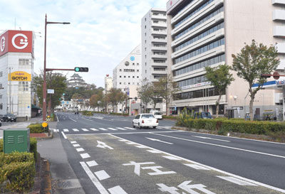 同支部を挟んで北側は師範学校附属小学校、南側には武徳殿がありました。高松方面に向かう人力車がやってきます。路面には水たまりが見えています。