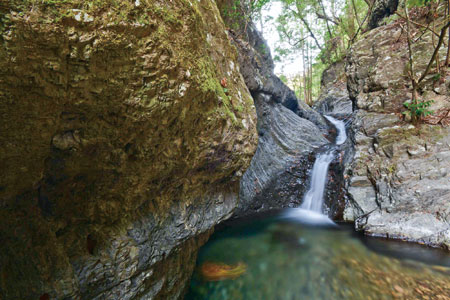 別の日、出雲国の僧、島津黙道が滝行のため訪れた。「2日、3日の修行はたやすい」と声がして女が現れた。驚いた黙道は祈祷し、女は大蛇と化した。後に村人が滝に行くと、弁当箱くらいの鱗が3枚落ちていた。