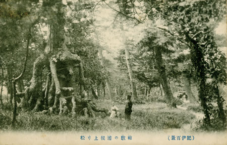 高松の根上り松は、『紀伊国名所図会』では幾本もあり名所として喧伝されていましたが、明治末期には鶴の松と伝承されるこの松を残すのみでした。