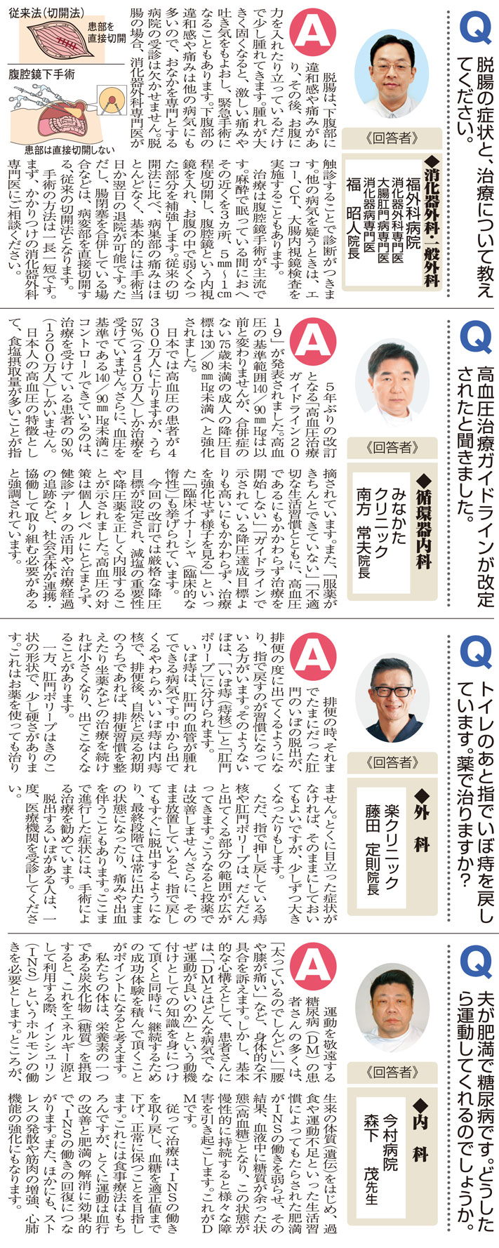 《回答者》 ◆外 科 楽クリニック 藤田 定則院… -