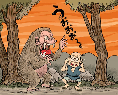 西牟婁地域に伝わる妖怪で、様々な伝説がある。山へ入ったまま帰らなかった男が200年ほど過ぎてから、突然帰ってきたかと思うと、裸足で服を着ず、毛が体中に生えていて、山爺になっていたとか、年を重ねた猿で、山中で遭うと吼えてくるとか。負けずに吼え返さなければ、とって食われるという話もある。ただ、これと似た話は和歌山に伝わる他の妖怪にも当てはまり、やまんぼや狒々(ひひ)、兵生(ひょうぜ)の松若などが伝わり方によって変化したものとも考えられる。