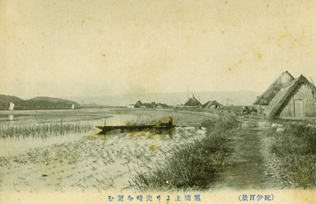 江戸期には和歌川河口両岸に塩田があったようですが、この写真の頃には和歌川左岸、今の県立医科大学附属病院及び明和中学校の敷地を中心に塩田が広がっていました。