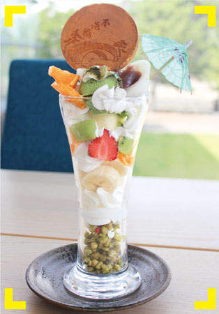 1年を通して人気のパフェ。万葉の里、和歌の浦をイメージして作りました。窓から見える和歌浦の風景と一緒に楽しんでください。