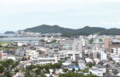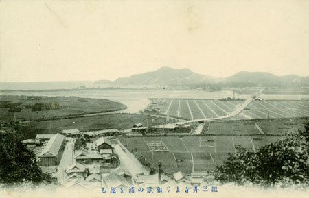 和歌の浦方面から旭橋を渡ってきたところ、左右に広がっていた塩田がよく見えます。
