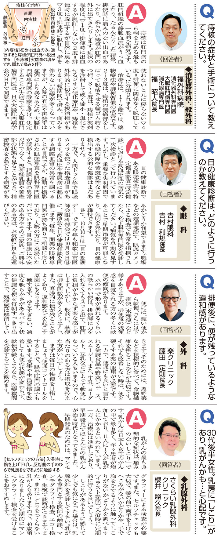 おしえて!マイドクターQ&A「痔核」「目の健康診断」「残便感」「乳がん」(2019.8.24)