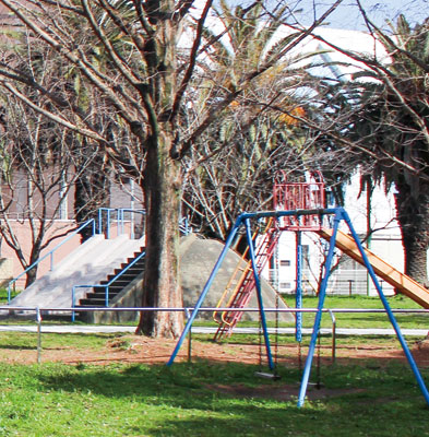 そのヒントを中之島連合自治会の白井公雄会長に聞けました。白井会長によると現在、向之芝公園や県立体育館がある場所にはかつて、向ノ芝球場や陸上競技用のトラック、テニスコートがあり、「中之島小学校に通っていた当時、マラソンの練習や写生大会で利用しました」。