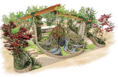 「仕事では施工主さんの注文を受けて庭を設計しますが、費用などの制約のない中で理想の庭を造りたいとの気持ちがありました。2012年に初めてショーを見に行ったとき、庭の水の使い方、石の組み方など刺激を受け、同じ舞台に立ちたいと思いました」