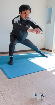 写真=毎日午前9時からのオンライントレーニング。手前に置いたスマートフォンを使い、角島康介コーチが事務所から教えてくれます