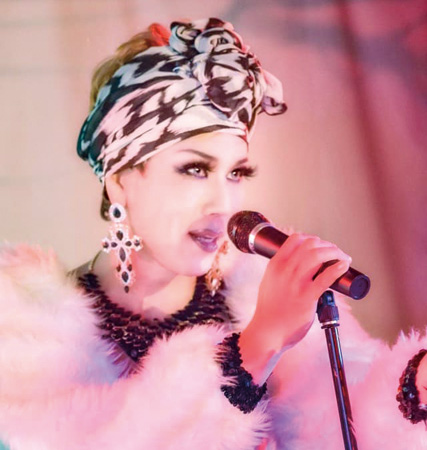 「身長が180㌢で、15㌢のピンヒールをはきパフォーマンスします。衣装のデザインや製作はすべて自分で行います。また衣装作家として、ほかのドラァグクイーンのドレスも手掛け、昨年末にはファッションショーを行いました」