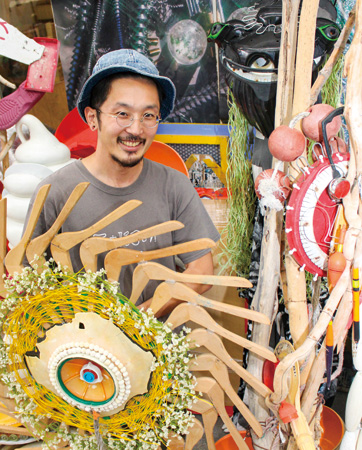 漁具、流木、プラスチック…。漂流ごみや廃品を使い、色彩豊かな立体作品を制作するのが和歌山市の石田真也さん(35)です。全国のイベント装飾のほか、現在、NHK・Eテレの「天才てれびくん」で小道具を担当。「廃品同士が組み合わさると、想像を超える。作品として新たな命と価値観を生み出したい」と話します。