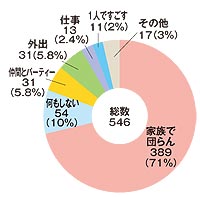 一方、何もしない人も多く、54人。また、「仕事」が13人、「一人で過ごす」が11人いました。「何もしない」の中には「夫婦2人なので何もしない」(62歳女性ら3人)との声もありました。