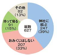 「その他」で多かったのは「大吉だけ持って返り、それ以外は神社へ結ぶ」(37歳女性)。大吉が出たら、そうしてしまいますよね。