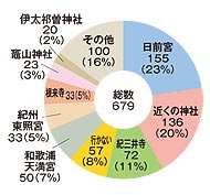 多くの方が日前宮に参拝しています。理由としては「車で行きやすい」(60歳女性ら6人)、「外出途中に立ち寄りやすい」(34歳女性)と交通アクセスの良さをあげる方が多数です。「毎年の決まり」(59歳男性ら22人)と日前宮参拝を1年の恒例行事とする方がいれば、「結婚式を挙げた場所」(50歳女性ら6人)、「子どものお宮参りをした」(59歳女性ら3人)と一生のおつきあいをされている方も多いです。