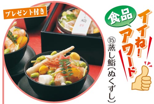 関西地方で江戸時代末期から伝わる、ちらし寿司を蒸して温めたぬくずし。日本料理店、笹一(和歌山市梶取)が作るぬくずしは、粗切りの穴子としいたけ煮を混ぜ込んだシャリに、エビやイカ、焼き栗を盛りつけた具だくさんな一品だ。2ヵ月熟成させた特製だれと、酢の酸味が絶妙な味を醸し出す。電子レンジや蒸し器で温めるだけで、気軽に食べられるのも魅力。