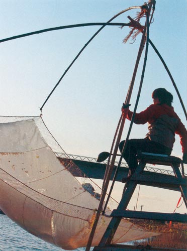 湯浅町と広川町の間を流れる広川の河口付近に、春先の2月下旬から3月下旬にかけて年に1度、シロウオが産卵のために来るそうです。四つ手網と言われる四角い網を川の底に沈め、体長3〜5㌢のシロウオをすくい獲っています。江戸時代から続く伝統的な漁法で、この地方の春を継げる風物詩になっています。継承する漁師さんは、今では4、5人しかいないようです。(撮影・文章=和歌山市 笠松康作さん)