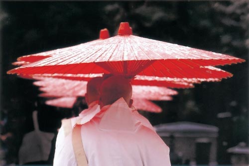 開創1200年を迎えた高野山の奥の院。早朝、弘法大師が入定されている御廟(ごびょう)へ何十人もの僧侶が列をなして向かっていました。この光景を撮るため、前日は宿坊に泊まり、朝の暗いうちからカメラを抱え、2時間ほど待ちました。参道の遠くの方から順に灯ろうの明かりがつき始め、小雪が舞う中、白い袈裟(けさ)に赤いかさをさした僧侶の列がゆっくりと近づいてきました。前を通り過ぎた時は、凜(りん)とした空気が張り詰めていました。 (撮影・文章=和歌山市 藤吉修忠さん)