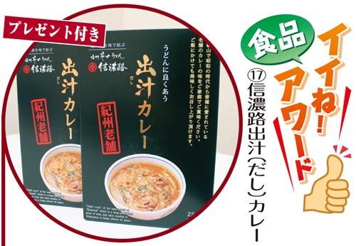 1975年の創業以来、そば、うどんを中心に和食を提供する「信州そばうどん信濃路」。中でも人気ナンバーワンのカレーうどんを、家庭で手軽に味わってもらおうと生まれた。3種類のかつおぶしと昆布でとった和風出汁は、レトルトと思えない本格風味。タマネギにネギ、薄くスライスした牛肉とボリュームのある具は食べ応え充分だ。1袋250㌘と量が多く、うどんにご飯にと1袋で両方楽しめる。499円。信濃路本部(073・471・1088)。