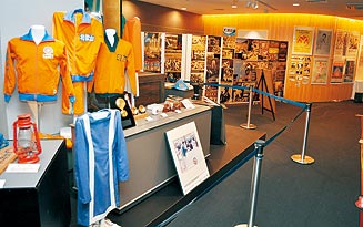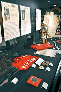 常設展示では県出身や県チームに所属した選手たちの輝かしい戦績を振り返ることができる。東京五輪をわかせたバレーボールの宮本恵美子さんのユニフォーム、北京、ロンドン五輪のレスリングで活躍した湯元健一、進一兄弟のシューズとサインのほか、サッカーワールドカップに出場した駒野友一選手のユニフォーム、星林高校出身の元プロ野球選手、小久保裕紀さんの2000本安打記念バットなどがずらり。時代、種目問わず賞状やトロフィー、サイン入り色紙、競技用具など300点以上が並ぶ。