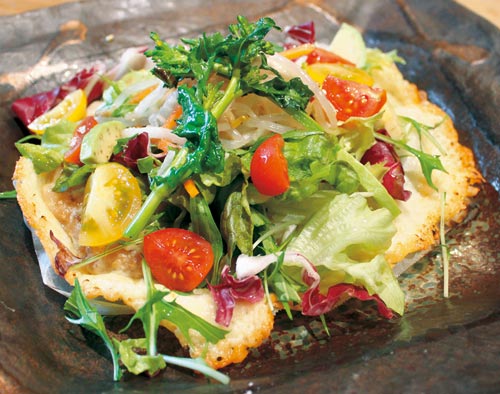 ④焼き上がったら、最後に葉物野菜をトッピングして完成!