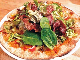 吉川 農園でとれた無農薬の野菜を使った石窯料理がメーンです。ランチは週替わりのセットメニューで、夜はピザやグリル料理。野菜や果物は旬のとれたてが一番おいしいので、畑を見てメニューを決めています。大根をコトコト煮て、その甘みだけで仕上げたポタージュや、春菊とカシューナッツのペーストを添えた原木しいたけの味噌焼きがおすすめ。素材そのものの味を感じてほしくて優しい自然な味に仕上げています。飲み物ははっさくと梅、レモンの酵素ジュースが人気です。