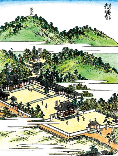 上の絵は、愛宕山東麓の塩屋村(現和歌山市塩屋)にある光明寺の約200年前の全景です。