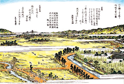 上の絵は、和歌山市の山口地区から紀ノ川の下流方面をみた約160年前の風景です。