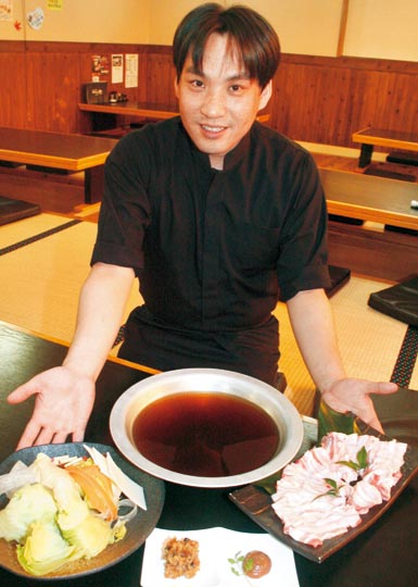 創業53年を誇るめんどり亭は今年6月、和歌山市梶取のきらくゆ和歌山店内に「きらくゆ店」をオープンした。四季折々の和食で人気を集めてきためんどり亭は、これを機に和歌山ならではの新しい創作料理の提供を始めた。現在は、紀州の郷土食で、めんどり亭の名物でもある茶がゆから発想した「紀州茶鍋」が一押し。同店の店長、角谷憲一さん(39)に、新しいメニューや、今後の展開について聞いた。(文中敬称略)