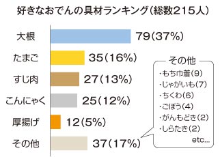 3位のすじ肉は「柔らかくておいしい」(8歳女性)、「とろとろに煮込んだ味が最高」(16歳女性)と若い世代から支持を集めます。4位のこんにゃくは60歳女性が「ヘルシーなので」。伸び悩んだ練り物では、「良いちくわは味わいと歯ごたえがある」(33歳女性)、「練り物と肉、両方の魅力があるウインナー巻き」(30歳女性)と、それぞれのこだわりが垣間見えました。