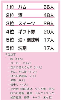 いよいよ年末。この1年間にお世話になった人や親戚へ贈るお歳暮は決まりましたか? 本紙読者に「もらってうれしいお歳暮」を尋ねたところ、定番のハムが1位に。酒、スイーツと続きますが、共通するのは「普段自分で買うことのないものを」との声。お歳暮選びの参考にご活用下さい。(回答数295人)