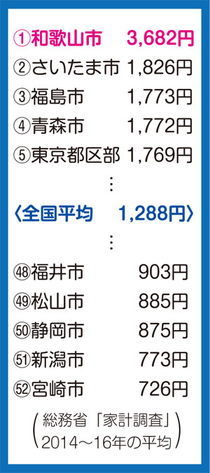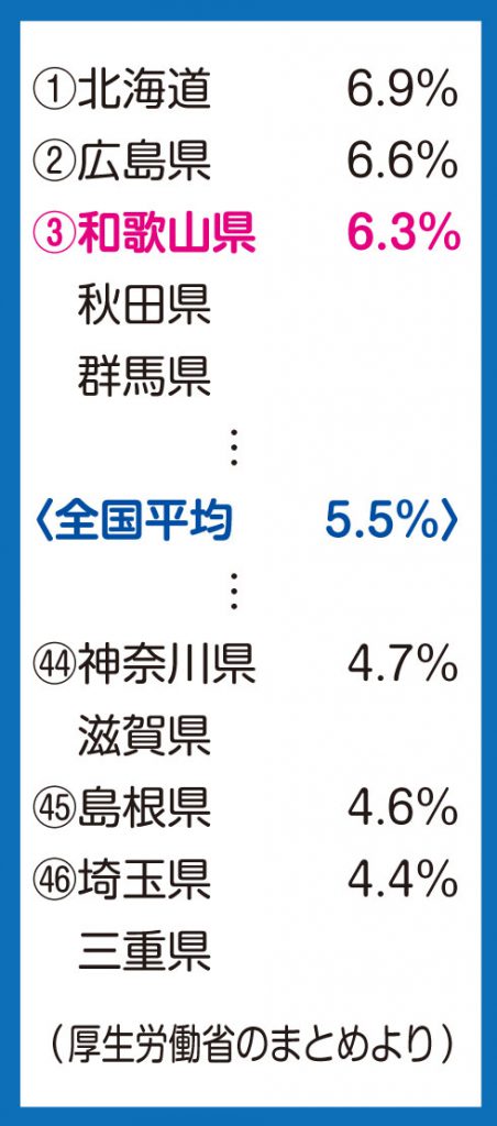 さて、表は、ある家電の普及率。和歌山県はわずかの差ながら、97・2%でトップです。上位5県は近畿2県に、北陸、四国、中部が1県ずつ。日本列島の真ん中あたりに多いんですね。一方、下位5県は北海道、東北と北日本が目立ちます。