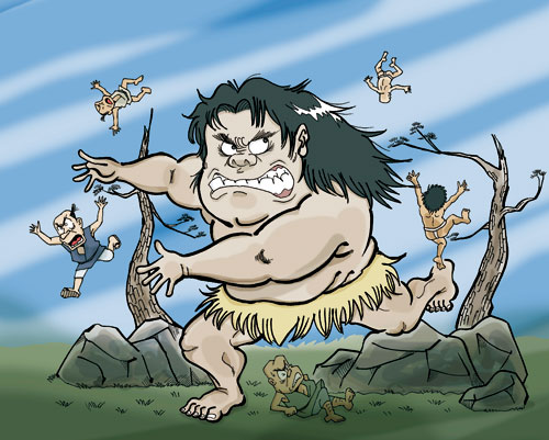 和歌山と奈良の県境にある果無山脈、安堵山の麓、兵生という村に生まれ、松若と名づけられた子は、生まれてすぐ歯が生えそろい、黒髪が肩まで伸びていた。人より成長が早く、食べる量もハンパない。このままでは家族に迷惑がかかると、10歳になるころには山にこもって帰らなくなった。数年後、盗賊が村を荒らし回った。山で鬼のように大きくなった松若は、村人が困っていると知るや疾風のごとく村に下り、盗賊を次々となぎ倒した。その後、松若を見た者はいないが、今も冬は山から松若の「うおお~」という声が聞こえるという。