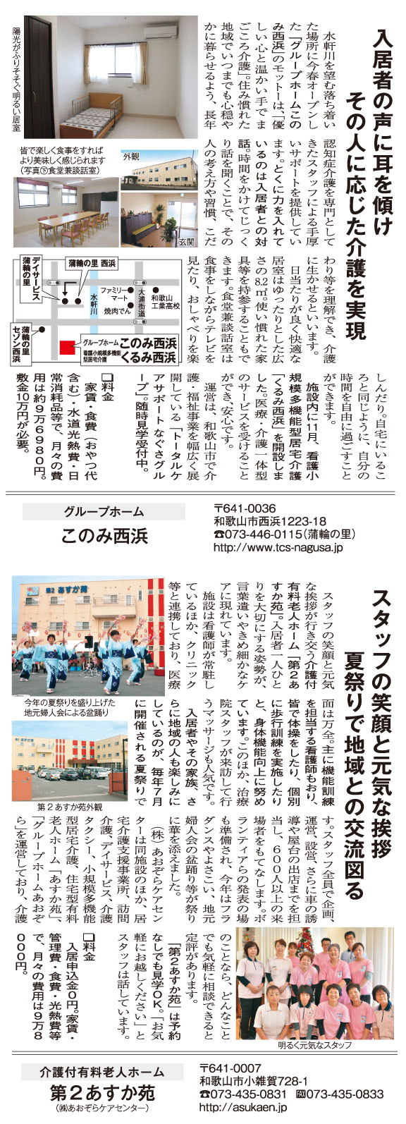 近ごろの介護施設情報〜このみ西浜、第2あすか苑〜