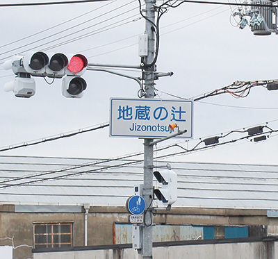 少し場所が変わりましたが、お地蔵様は今も昔も、まちの交通を見守っています。