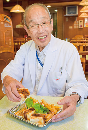 終戦直後の1945年10月、和歌山市雑賀屋町東ノ丁に開店したまつや食堂はうどん店から出発し、今年で76年。洋食や丼物といったメニューは、今も多くの常連客を魅了しています。新型コロナウイルスの感染が拡大する今、30年ほど前から人気のカツサンドを、〝コロナにカツ〟との思いを込めてPR。代表の花岡豊さん(80)は「自分たちができることから始めたい」と意気込みます。
