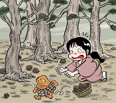 ちっちりこは和歌山弁で「松ぼっくり」のこと。橋本市に住むAさんのおばあさんは、ちっちりこで人形を作る名人だった。Aさんは年老いたおばあさんの代わりに、家の裏山へちっちりこを拾いによく行った。その日もカゴいっぱいに拾ったので帰ろうとしたところ、見たことがないくらい大きなちっちりこを見つけた。拾おうと手を伸ばすと、ちっちりこがひとりでに、ぴょんと弾んだ。目の錯覚かなと思い、もう一度手を差し出すと、ちっちりこからゴトヒキ(ヒキガエル)のような顔がにゅっと出て、そのままどこかへ逃げていった。