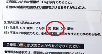 猫の駅長にユニーク車両と、ほのぼのとした貴志川線に関連し、少々物騒な質問が寄せられました。和歌山市の辻泰仁さんから届いた「掲示されている規定に持ち込めない荷物として“死体”とありますが、こんなものを持ち込む人はいるのですか?」を調べます。