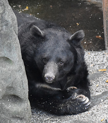 当園の園長はツキノワグマのベニーちゃんです。1994年にやってきて、今は推定28歳です。ベニーちゃんのご飯は蒸したサツマイモと、クマの専用エサ。毎日、おばあちゃんとは思えない完食ぶりです。